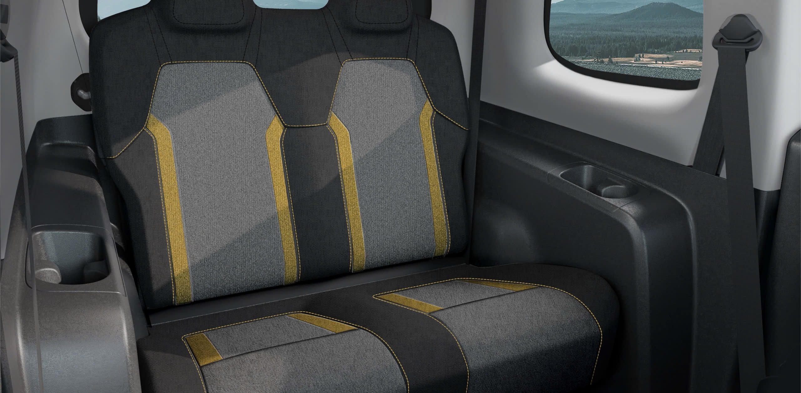 Cabin 2 chỗ dành cho tài xế và phụ xe, bố trí tối giản nhưng thực dụng. Vật liệu nhựa cứng và vải bền, dễ vệ sinh. Bảng táp-lô đủ chức năng với màn hình nhỏ hiển thị thông tin cơ bản, hệ thống điều hòa, kính chỉnh điện, đầu CD/Bluetooth. Khoảng để chân thoải mái, khu vực để đồ phụ rộng rãi. Cửa hậu rảnh tay hỗ trợ mở khi chất hàng nặng, giúp tăng tính tiện ích trong vận chuyển.