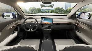 Nội thất VF 6 được thiết kế tinh tế, với không gian rộng rãi, thoải mái. Ghế bọc chất liệu cao cấp, màn hình cảm ứng trung tâm 12,9 inch tích hợp các tính năng giải trí và điều khiển xe. Hệ thống điều hòa tự động, cửa sổ trời toàn cảnh, cùng các tiện ích thông minh mang đến trải nghiệm lái xe tiện nghi và hiện đại.