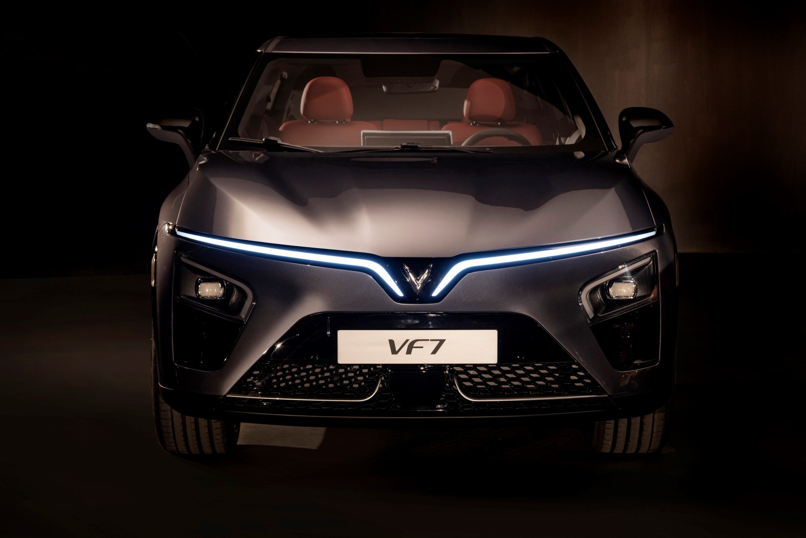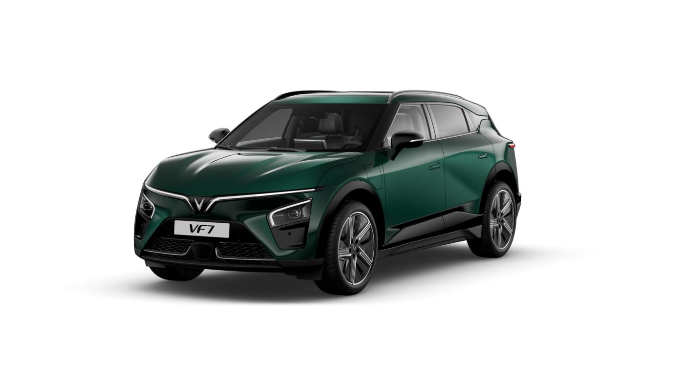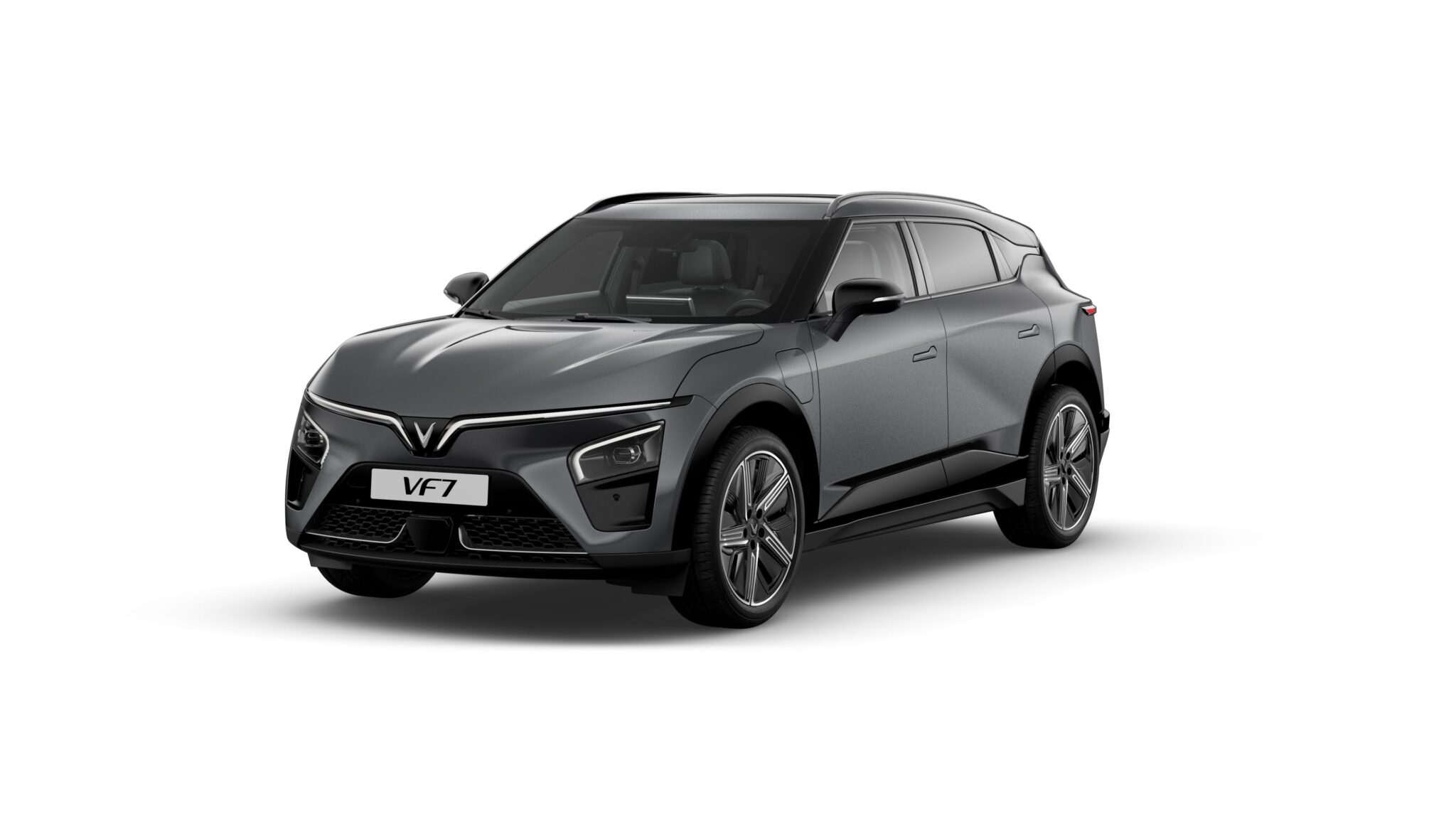 VF 7 sở hữu thiết kế khí động học với đường nét sắc nét, lưới tản nhiệt kín đặc trưng EV. Đèn pha full-LED, đèn hậu LED trải dài, và la-zăng hợp kim 19–21 inch. Thân xe có tay nắm ẩn, gương tích hợp camera 360°, và ăng ten vây cá mập. Hông xe mạnh mẽ, cản sau tích hợp đèn phản quang, mang lại cái nhìn thể thao và sang trọng.