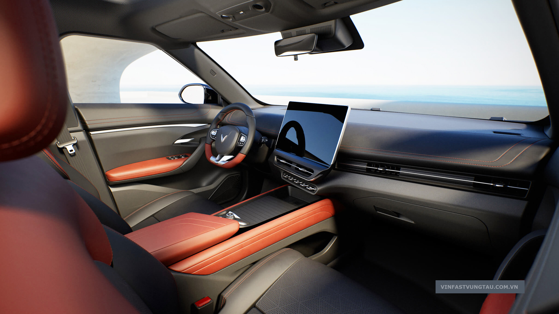 Nội thất VF 7 hiện đại với *táp-lô tiếng cỡ lớn*, màn hình trung tâm 12,9–15 inch, ghế da cao cấp chỉnh điện, sưởi, thông gió. Vô-lăng bọc da, tích hợp phím ADAS, cần số dạng cần. Trang bị điều hòa tự động 2 vùng, lọc không khí, cửa sổ trời toàn cảnh. Hệ thống âm thanh 8 loa, kết nối Bluetooth/USB/Apple CarPlay/Android Auto.